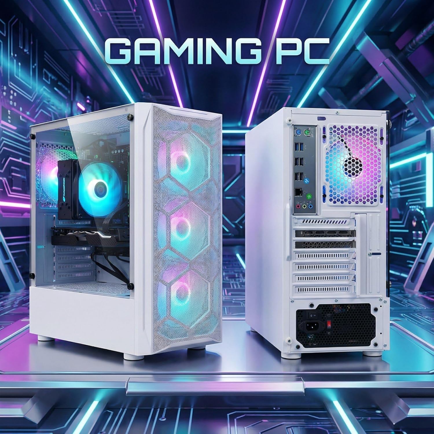 Gaming Desktop Connectivity: This gaming pc comes with: RGB Fan x 4 | 1x RJ-45 | 1x Serial | Wi-Fi 6 | Bluetooth 5.0 | AMD Radeon RX 590 8G GDDR5 Video Card | 1x HDMI | 1x DisplayPort | 1x DVI